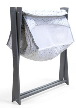 The Folding Crib is a standalone, lightweight, stationary crib that locks into position when in use, and can easily be folded away as a space-saver or if you’re travelling, it folds down flat, ideal to take with you in the boot of a car.
