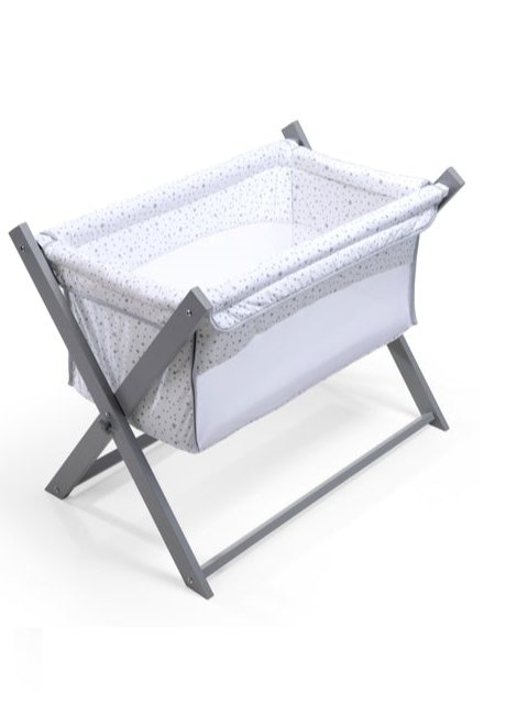 Dressed in a delicate Stars cotton jersey fabric in contemporary grey, the folding crib features breathable mesh side panels to ensure optimum air circulation and temperature control. Comes complete with a firm mattress to support your baby’s back, creating a comfortable and cosy sleeping space.