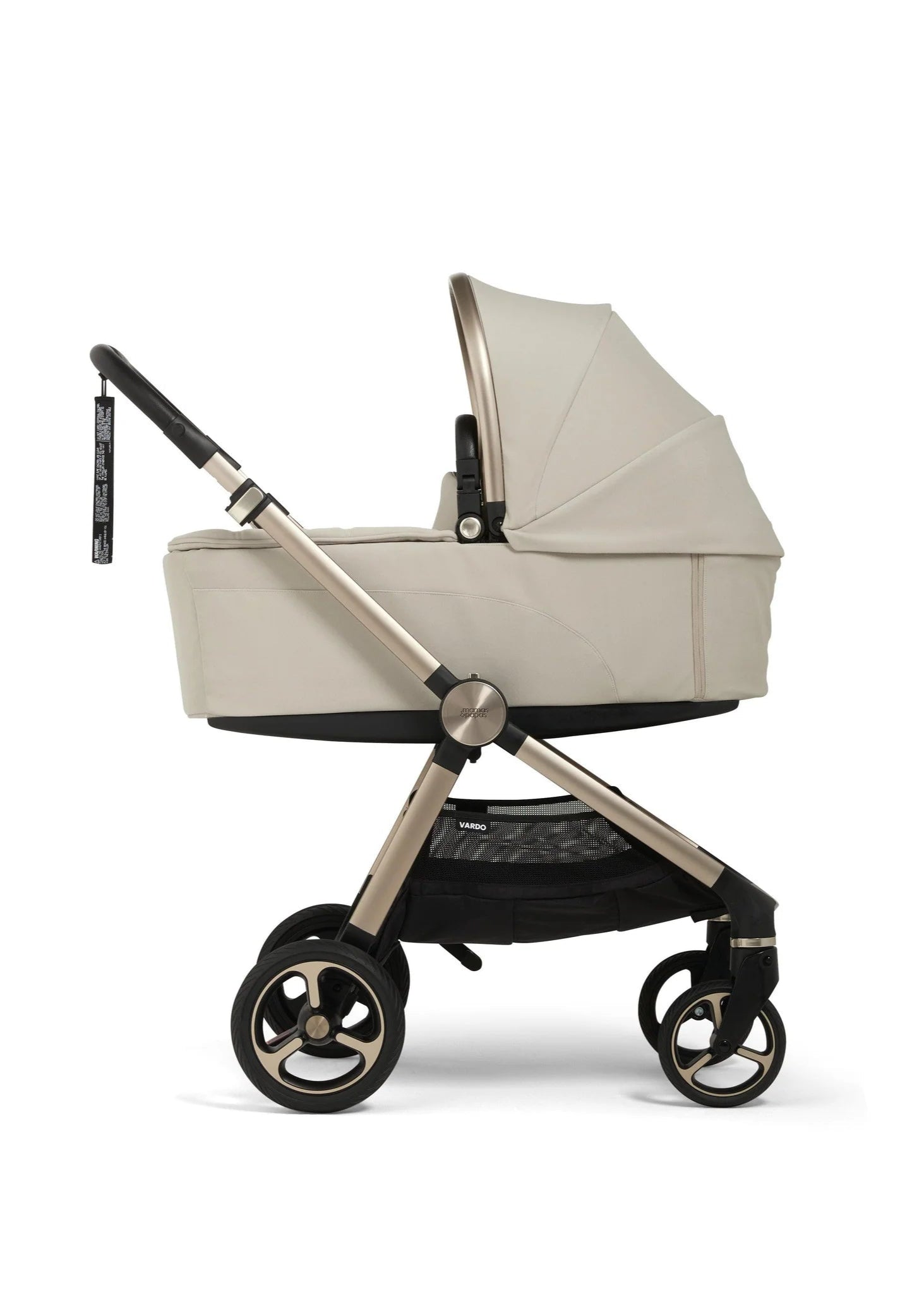 Designed for use with our Vardo pushchair, this carrycot offers your newborn the ultimate in comfort and safety. Features a cushioned mattress and lie-flat position, to support your baby’s natural sleeping position. A handy buttoned apron and silent magnets means you can tuck baby away quickly and quietly, whilst its hood's optional air vent keeps them cool and comfortable.