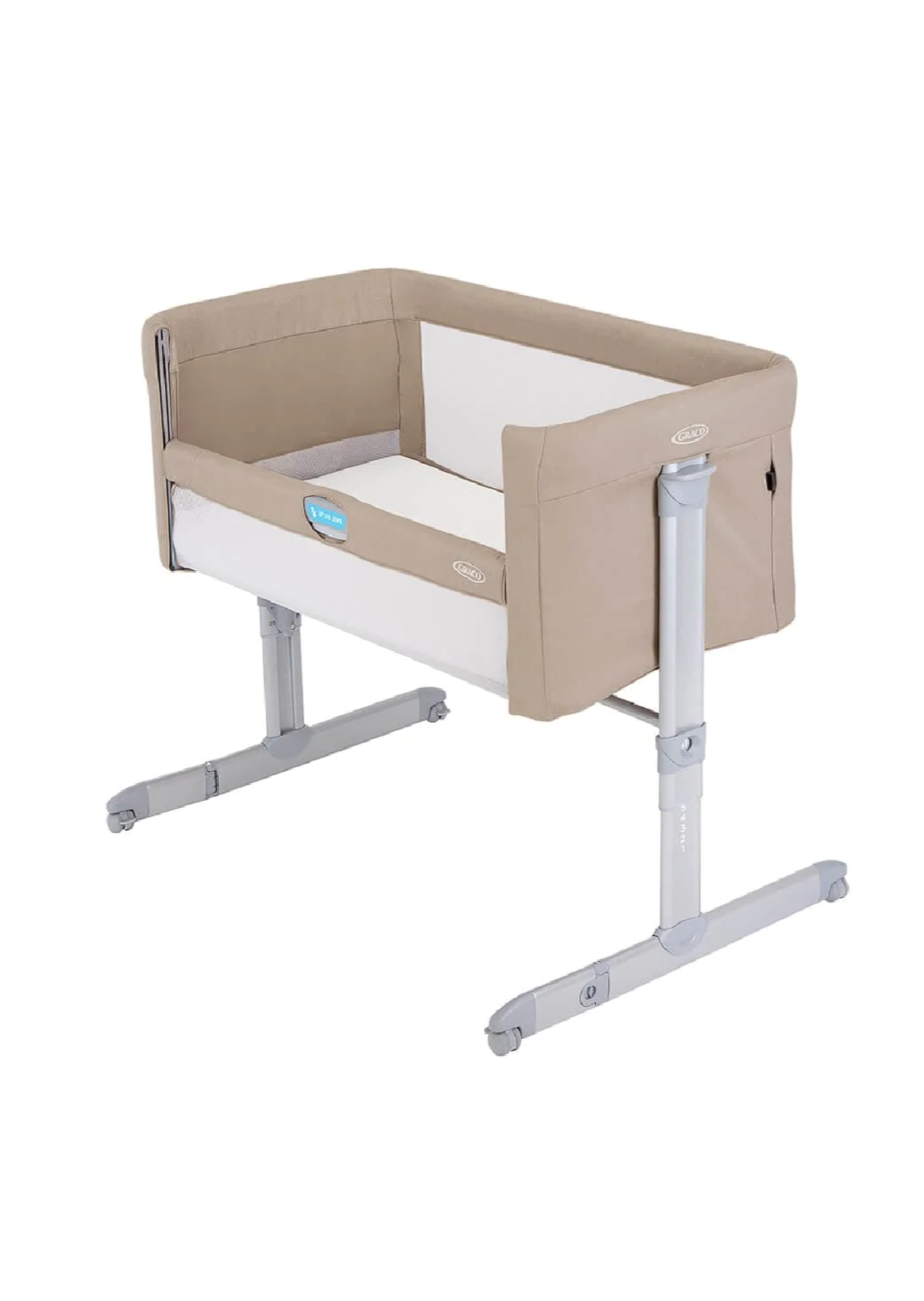 Taking the night shift with your newborn has never been easier. The easy-access side rail raises and lowers with just one hand, making it possible to do everything you need from the comfort of your bed. When not attached to the bed, tilt Sweet2Sleep to any of the 4 positions to help baby digest that middle-of-the-night feed more easily. With the 11 height adjustments, you can make Sweet2Sleep fit perfectly to your bed. The folding feet can bring the crib closer to your bed if you have a divan or an enclosed space under your bed.
