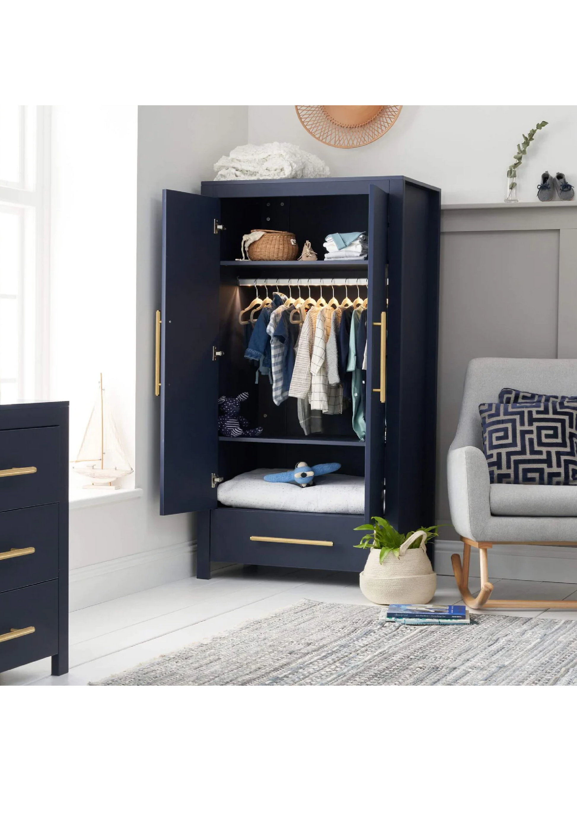 Spacious and versatile, the changing chest offers three generously sized drawers, whilst the wardrobe has plenty of hanging space, two adjustable shelves, a full-size drawer, and motion sensor lighting for night-time changes.